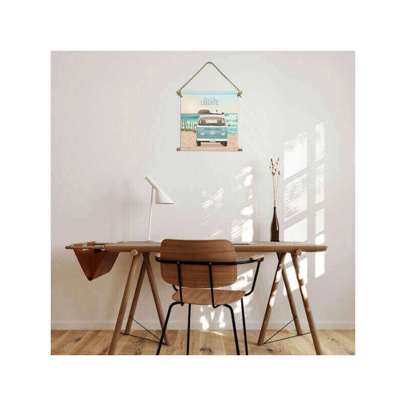 Imprimée sur une toile de qualité et suspendue par une jolie corde naturelle, cet objet de déco conjugue authenticité et modernité grâce à son support en bois.