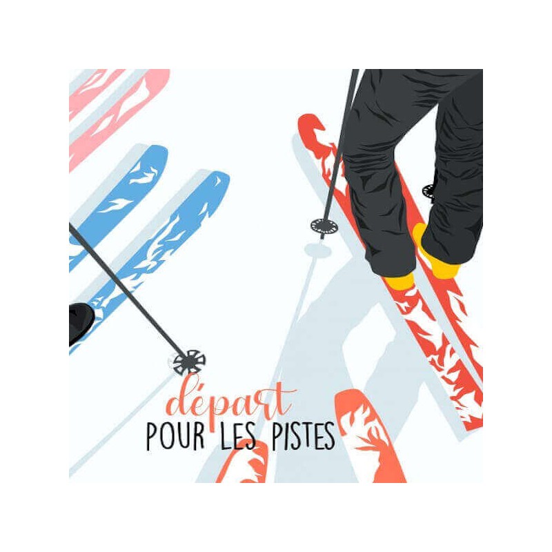 L'inscription "départ pour les pistes" pose immédiatement le challenge sportif de l'hiver.
