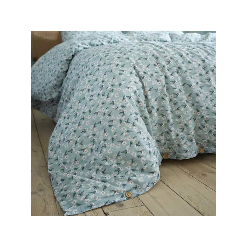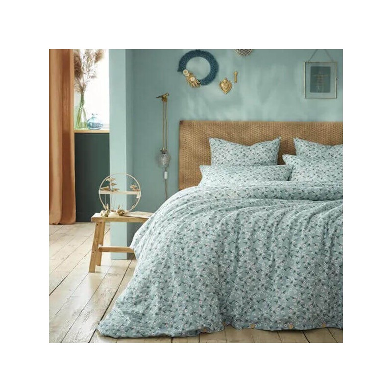 Du printemps à l'automne, entre fleurs et feuilles, la housse de couette FLORE borde vos rêves de rencontres poétiques.
