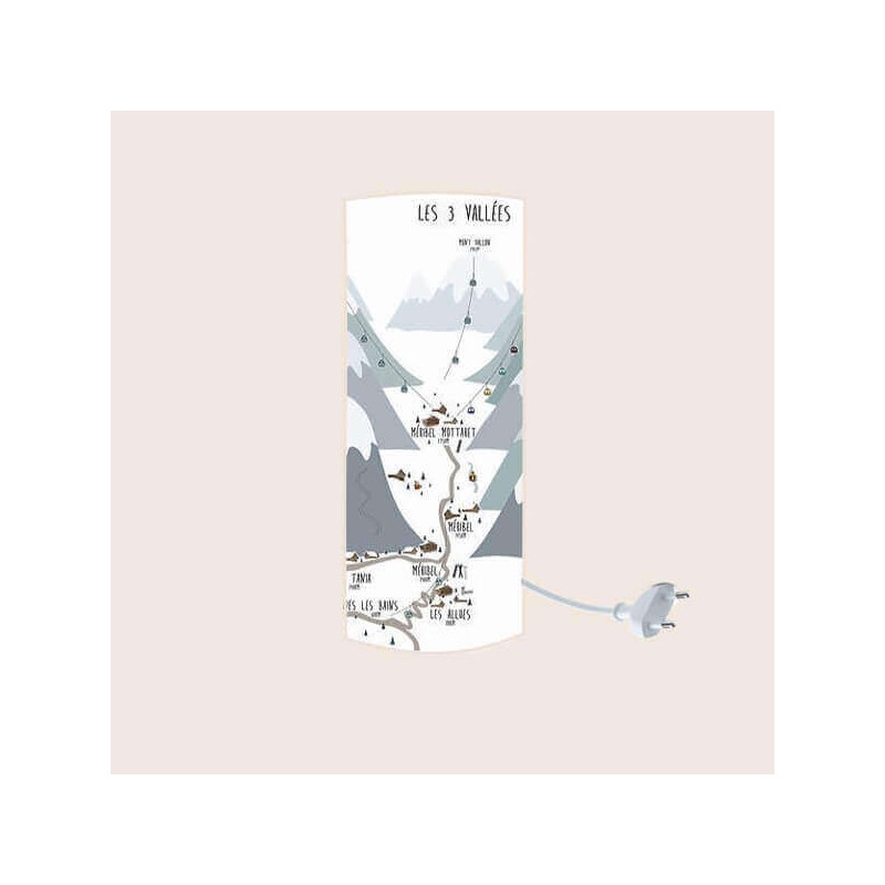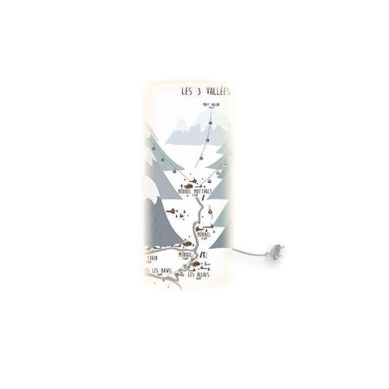 Dédiée aux skieurs, la lampe à poser MERIBEL vous offre une sensation d'évasion en vous proposant vos spots de glisse favoris sur le domaine skiable des 3 Vallées.