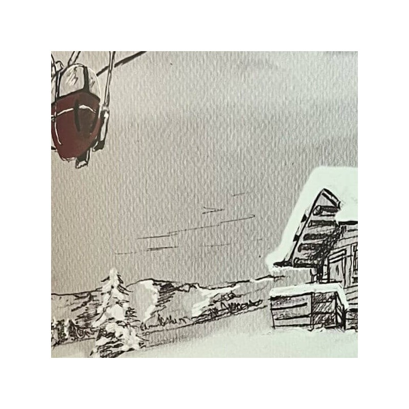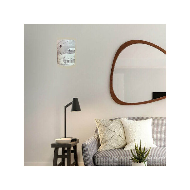 Installée dans un salon, une chambre ou un couloir, l'applique murale dédiée à ce refuge montagnard apporte à votre décoration une élégance naturelle à peine perturbée par le ballet des "oeufs" conduisant skis et skieurs jusqu'au sommet.