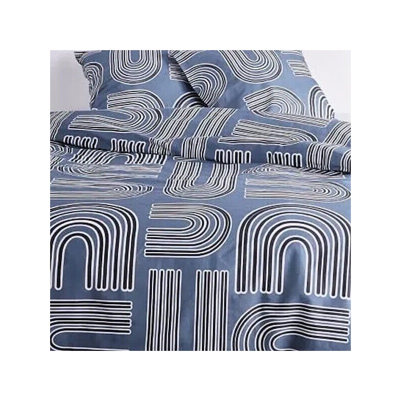 Ses motifs forment des ponts. Une housse de couette et deux taies d’oreiller coordonnées composent l'ensemble.